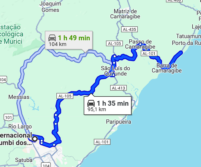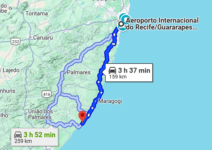 O Aeroporto Internacional dos Guararapes (REC), em Recife, também pode ser uma opção. O percurso tem aproximadamente 190 km e leva cerca de 3h a 3h30.